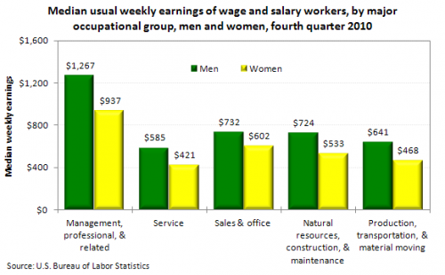The headline is obviously dripping with snark. The Bureau of Labor Statistics has again confirmed what we already know: men make more than women in virtually everything.